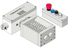 - Sebastian Köneke, Jan Hermeling und Henrik Averbeck befassten sich mit der Konstruktion einer Peristaltikpumpe, die durch versetzt angeordnete Rotoren die Flüssigkeiten pulsreduziert durch einen Schlauch fördert. Die Auslegung der Pumpe basiert auf die technischen Daten eines vorhandenen 24 V Getriebemotors und den Anforderungen im Lastenheft. Die Gruppe setzte dies sehr gut um und präsentierte den Zuschauern sowohl eine 3D Animation mit Inventor als auch die Pumpe als Hardware. Der gewünschte Volumenstrom wird über ein Touch-Display mit der Kleinsteuerung LOGO! eingestellt.